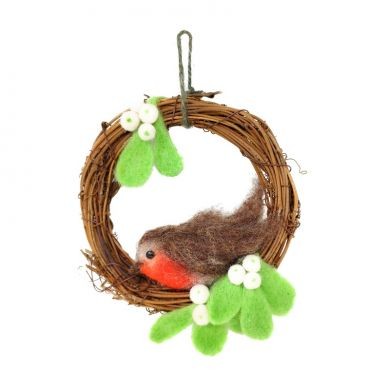 This is a lovely festive needle felting kit containing everything you need to make a delightful little robin, nestling in amongst mistletoe leaves and berries.