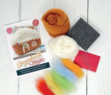 The Crafty Kit Company's Gingerbread needle felting kit contains everything needed to make a delicious looking gingerbread house, including step by step colour instructions, wool, top quality German felting needles and a recycled foam pad.